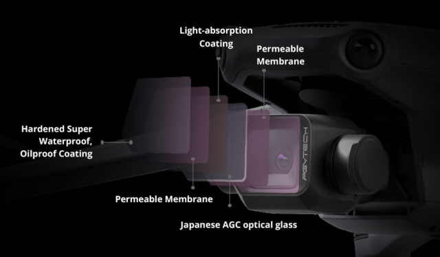 Der Filter besteht aus doppelt beschichtetem japanischem AGC-Optikglas und gewährleistet Farbgenauigkeit und einen niedrigen Brechungsindex für klare, scharfe Bilder. Die doppelseitige Beschichtung macht ihn wasser-, öl- und kratzfest, während der leichte, robuste CNC-Aluminiumrahmen korrosionsbeständig ist und so konstruiert wurde, dass er die Flugbalance der Drohne aufrechterhält. Mit einer Lichtreduzierung um 1 Blendenstufe ist dieser CPL-Filter perfekt für Luftbildfotografen, die in hellen Umgebungen eine bessere Klarheit und Bildqualität erzielen möchten.
