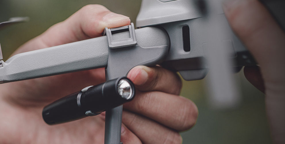 Integrierte, hinten angebrachte LED-Leuchten sorgen für eine bessere Sichtbarkeit Ihrer Umgebung und der Landezone. Jede LED verfügt über vier Intensitätsmodi – hoch, mittel, niedrig und pulsierend – und kann für eine optimale Ausleuchtung um 50° nach oben oder um 30° nach unten geneigt werden. Trotz der zusätzlichen Funktionalität erhöht das gesamte Set das Gewicht Ihrer Drohne nur um 54 g, sodass die Flugleistung erhalten bleibt.