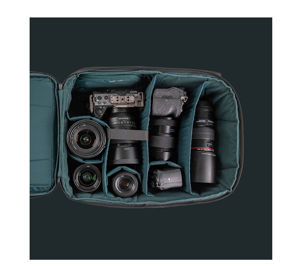 Der Rucksack verfügt über eine schnell zugängliche Seitentasche für den schnellen Zugriff auf wichtige Ausrüstung, Stativgurte, eine versteckte AirTag-Tasche und zusätzlichen Stauraum für Akkus. Ergonomische Designelemente wie gepolsterte Schultergurte, ein Hüftgurt und eine belüftete Rückwand entlasten bei längerem Tragen. Mehrere Tragegriffe an der Ober-, Seiten- und Rückseite erleichtern das Anheben und Handhaben und machen ihn ideal für Reisen, Dreharbeiten vor Ort oder den täglichen Weg zur Arbeit.