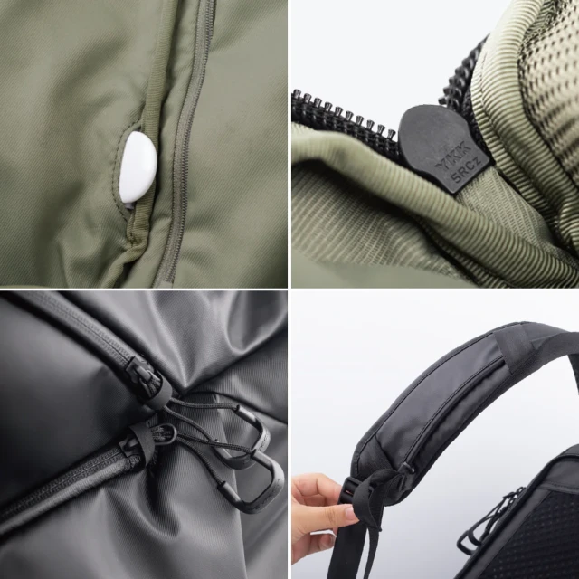 Darüber hinaus finden Sie im Rucksack eine versteckte Tasche für AirTag, Taschen für Batterien oder einen oberen Rollverschluss mit Schnallen für mehr Sicherheit. Die Außenseite des Rucksacks besteht aus wasserabweisendem Polyester und verfügt über hochwertige YKK-Reißverschlüsse für eine lange Lebensdauer und zuverlässigen Schutz Ihrer Sachen.