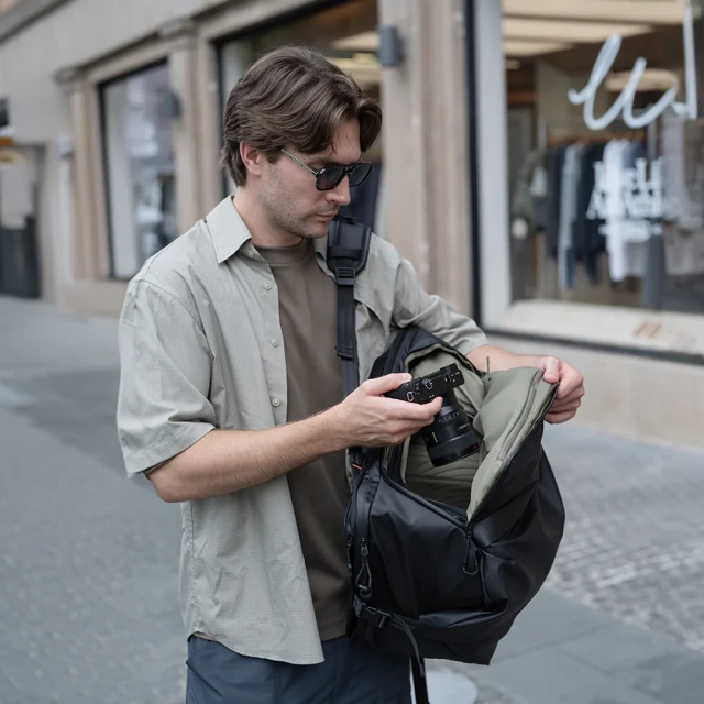 Der Rucksack kann auf verschiedene Arten getragen werden – auf dem Rücken, über der Schulter oder in der Hand. Der abnehmbare Gurt kann auch als separater Schultergurt verwendet werden. Die praktische breite Öffnung ermöglicht einen schnellen Zugriff auf den Inhalt, es gibt auch ein spezielles Fach für einen Laptop (bis zu einer Bildschirmgröße von 16") und flexible Trennwände für eine übersichtliche Organisation.
