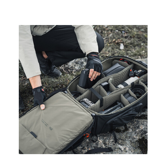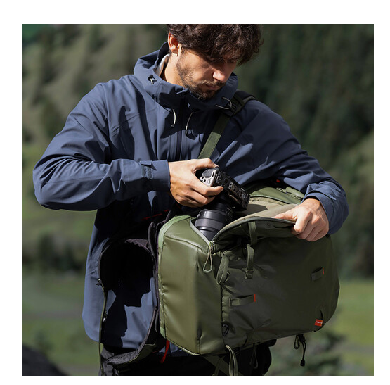 Der Rucksack besteht aus HyperGuard-Material – einem strapazierfähigen Cordura-Gewebe mit PU-Beschichtung – und ist spritzwassergeschützt, abriebfest und reißfest, sodass Ihre Ausrüstung unter allen Bedingungen sicher aufbewahrt ist. Die vollständige 180°-Öffnung ermöglicht einen einfachen Zugriff auf alle Fächer, sowohl von oben als auch von der Seite. Eine versteckte AirTag-Tasche hilft Ihnen, Ihren Rucksack zu orten, während ein Hüftgurt mit Kameraclip-Punkten und eine elastische Wasserflaschentasche für zusätzlichen Komfort bei Outdoor-Abenteuern sorgen. Der Rucksack verfügt außerdem über magnetische Kompressionsschnallen, eine integrierte Sicherheitspfeife und eine Regenhülle für zusätzlichen Schutz.