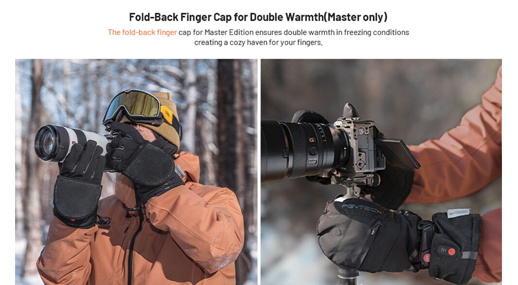 Mit den PGYTECH Master Photography Gloves (Large) bleiben Sie auch bei eisigen Temperaturen warm und komfortabel. Mit Graphen-Heiztechnologie, spritzwassergeschütztem Schutz, gepolsterten Lederhandflächen und umklappbaren Fingerspitzen sind diese Handschuhe für Fotografen konzipiert, die Präzision, Wärme und Fingerfertigkeit bei extremer Kälte benötigen.