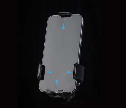 Vollständig umschließende Smartphone-Halterung mit rutschfestem Gummi auf der Rückseite, den Armen und der Oberseite