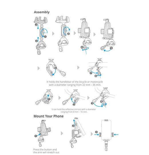 Sichere Befestigung von Smartphones an Fahrrad- und Motorradlenkern oder Seitenspiegelhalterungen
