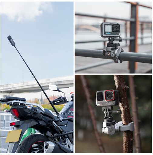 Die Super Clamp Mount verfügt über eine standardmäßige 1/4"-20-Schnittstelle und ist somit mit Action-Kameras, Handyhalterungen, Verlängerungsstangen und Zubehör kompatibel. Die mitgelieferte CapLock-Schnellverschlussklemme und der Actionkamera-Adapter ermöglichen eine schnelle Montage und Demontage, was beim Wechseln der Einstellungen Zeit spart. Die Halterung wurde unter Berücksichtigung der Sicherheit entwickelt, unterstützt eine Tragkraft von bis zu 350 g und enthält klare Gebrauchsanweisungen für die Fahrgeschwindigkeit und die Kompatibilität mit Selfie-Sticks.