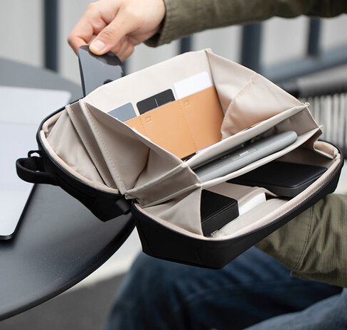 Der PGYTECH P-CB-091 Tech Organizer wurde für Technikbegeisterte, Reisende und Berufstätige entwickelt, die eine intelligente Möglichkeit zum Transportieren und Organisieren kleiner Gadgets und Zubehörteile benötigen. Die Klappöffnung des Organizers ermöglicht einen schnellen Zugriff sowohl in halbgeschlossener als auch in vollständig geöffneter Position. Im Inneren sorgen Taschen im Origami-Stil, elastische Zubehörschlaufen und Reißverschlussfächer dafür, dass Kabel, Ladegeräte, Speicherkarten, Kopfhörer, Batterien, Stifte und Powerbanks ordentlich verstaut sind.
