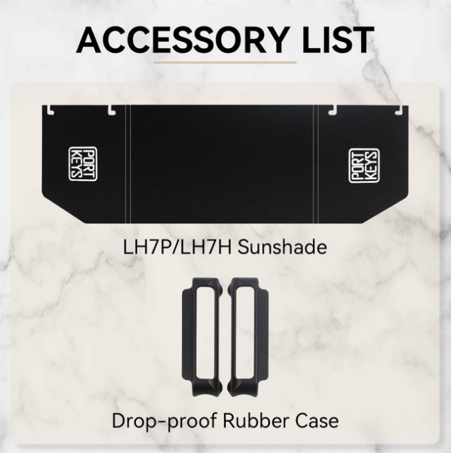 Die Portkeys LH7P/LH7H Sonnenblende ist eine leichte, faltbare Monitorhaube, die den LH7P und LH7H 7-Zoll-Feldmonitor vor Blendung und Sonnenlicht schützt und so eine klare Sichtbarkeit bei Außenaufnahmen gewährleistet. Er besteht aus strapazierfähigem PP+ABS-Material, wiegt nur 53,5 g und verfügt über ein kompaktes Design mit den Maßen 157 × 88 × 104 mm, das sich einfach anbringen lässt und sicher sitzt. Die mitgelieferte stoßfeste Gummihülle bietet zusätzlichen Schutz beim Transport.