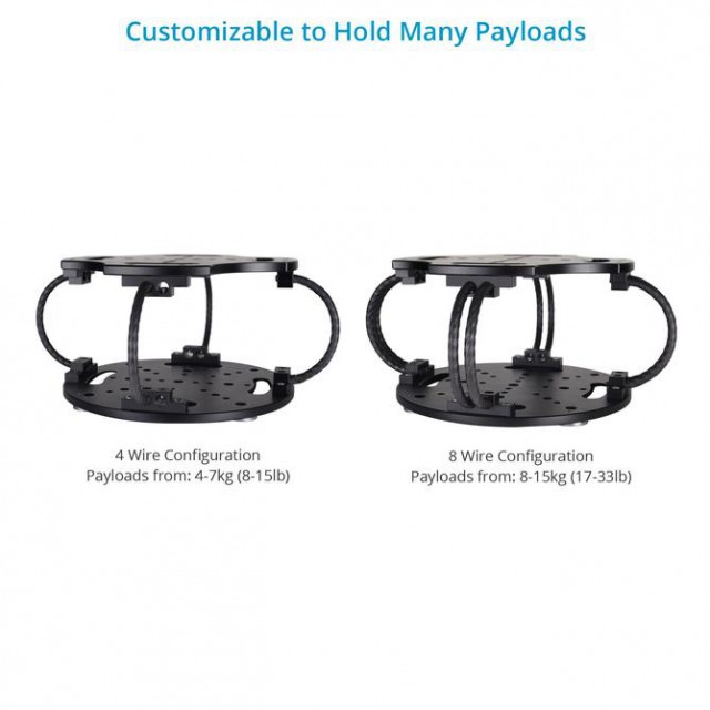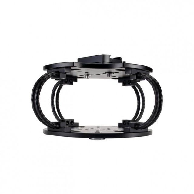 Das Isolatorsystem absorbiert Stöße, Unebenheiten und ruckartige Bewegungen des Fahrzeugs mit strategisch angeordneten 5/16-Zoll-Drahtkabeln, die den Kardan stützen und es ihm ermöglichen, Trägheitsbewegungen zu absorbieren. Der Isolator sorgt in Verbindung mit der kardanischen Aufhängung der Kamera für unglaublich ruhige Aufnahmen auch auf unebenem Gelände. Die Drahtmodule sind je nach Gewicht der Kameraeinrichtung und der gewünschten Aufnahme anpassbar.