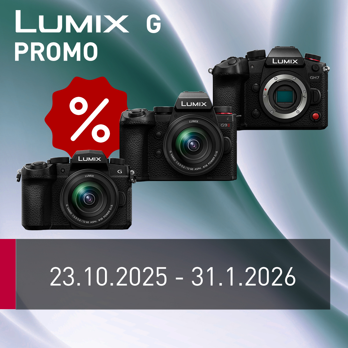 Planen Sie, Ihre Foto- oder Filmausrüstung zu erweitern? Jetzt ist der richtige Zeitpunkt dafür – vom 23. Oktober 2025 bis zum 31. Januar 2026 erhalten Sie bei uns ausgewählte Gehäuse und Kits der Panasonic Lumix G97, G9M2 und GH7 mit einem Rabatt von bis zu 400 €! Diese Spitzenmodelle der G-Serie bieten eine Leistung, die sowohl Profis als auch begeisterte Kreative zu schätzen wissen – von schnellem Autofokus und hoher Auflösung bis hin zu fortschrittlichen Videofunktionen und zuverlässiger Bildstabilisierung.