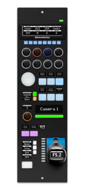 Das Herzstück des Systems bildet die Blue Pill Inside-Technologie von SKAARHOJ, die die Verarbeitung direkt in den Controller integriert und so einen flexiblen, eigenständigen Betrieb sowie eine nahtlose Geräteintegration ermöglicht. Das Panel verfügt über ein OLED-Display für Echtzeit-Feedback, einen integrierten Joystick zur intuitiven Parametersteuerung und eine Tally-Leuchte zur Anzeige des On-Air-Status.