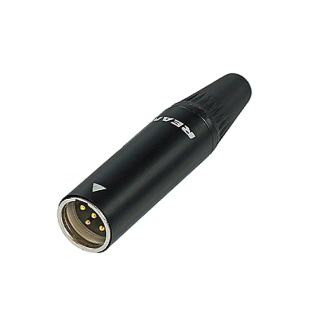 REAN RT3MC-B (Male)ist ein 3-poliger Mini-XLR-Kabelstecker mit schwarzem Metallgehäuse und vergoldeten Kontakten.