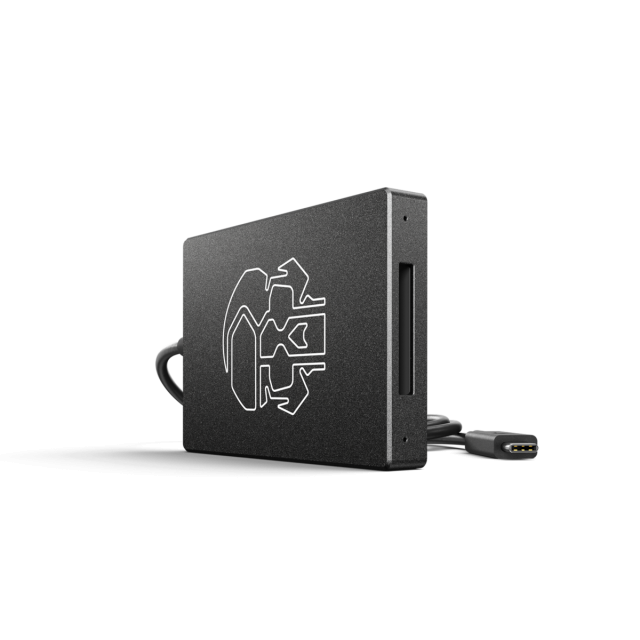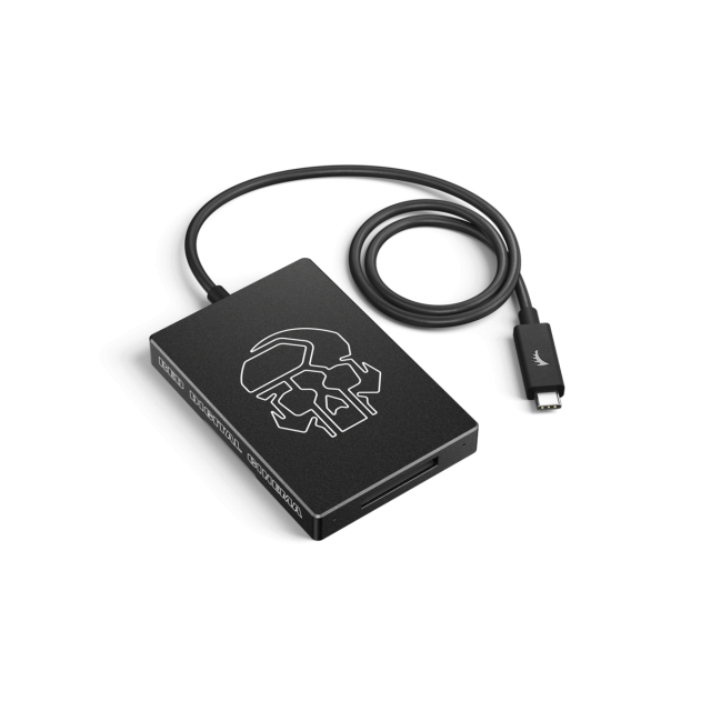 Der RED® CFexpress Card Reader ist ausschließlich für das Übertragen von Daten von RED® PRO CFexpress 660GB und 2TB Medienkarten auf Ihre Workstation konzipiert. Schließen Sie ihn über USB 3.2 Gen 2x2 an Ihre Kamera an, um CFexpress-Daten schnell zu übertragen (20 Gb/s).