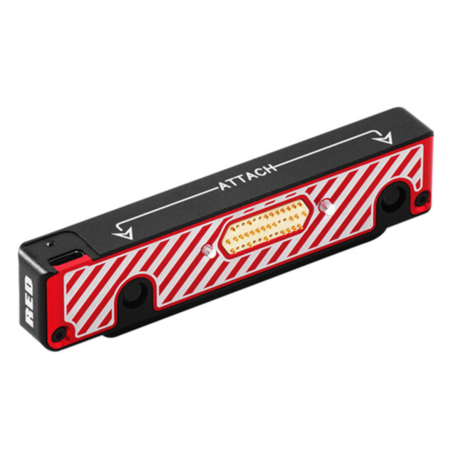 Der KOMODO® Link-Adapter bietet KOMODO eine USB-C-Schnittstelle, um die Nutzbarkeit der Kamera zu erweitern. Verbinden Sie den KOMODO Link-Adapter direkt mit einem iPhone oder Android-Gerät und erhalten Sie eine Live-Vorschau mit minimaler Latenz über RED_CONTROL. Die Fernsteuerung der Kamera und FTPS-Funktionen (File Transfer Protocol Secure) über Ethernet sind ebenfalls möglich, wenn Sie einen USB-C-zu-Ethernet-Adapter anschließen (nicht im Lieferumfang enthalten), der für die folgenden zusätzlichen Funktionen verwendet werden kann
