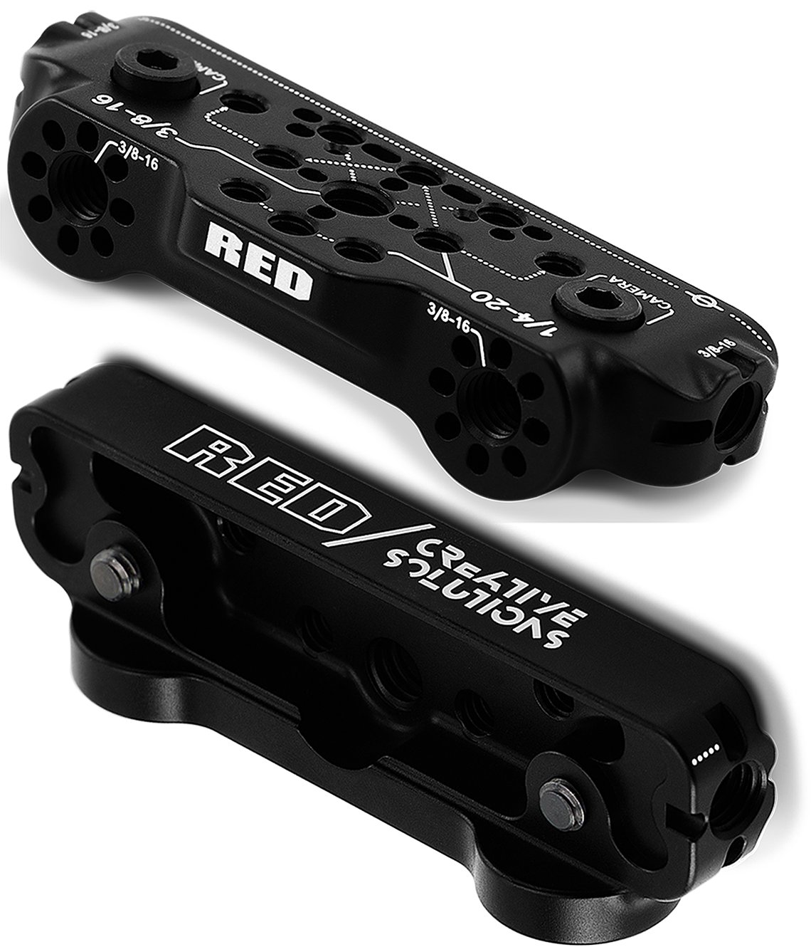 Die vordere Käseplatte bietet zusätzliche 3/8-16 & ¼-20 Befestigungsgewinde. Diese Platte wird benötigt, um den V-RAPTOR™ Top Handle und die Verlängerungen zu befestigen, wenn die V-RAPTOR™ Tactical Top Plate installiert ist.