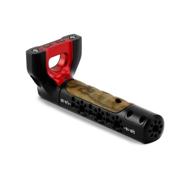 Der V-RAPTOR® Top Handle lässt sich leicht an der Oberseite Ihres V-RAPTOR® Kameragehäuses befestigen und bietet eine Kombination aus Komfort und Nützlichkeit für das Tragen oder Fotografieren mit Ihrer Kamera. Dieser oben montierte, maschinell gefertigte Griff verfügt über ergonomische Bocote-Holzintarsien mit Kameraauslösersteuerung. In Verbindung mit dem Top Handle Extension Kit lässt er sich auf vielfältige Weise konfigurieren und verfügt über mehrere 1/4-20- und 3/8-16-Gewinde.