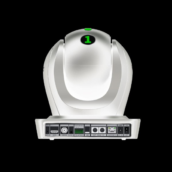 Die RGBlink 4K Vue NDI PTZ-Kamera ist eine Hochleistungskamera mit stabilem AI-Tracking, einer Auflösung von 3840x2160@60, vielseitigen Ausgangsoptionen und fortschrittlichen Funktionen wie Dualmikrofon und PoE+, wodurch sie sich ideal für eine Vielzahl von professionellen Anwendungen eignet. Farbe: Weiß.