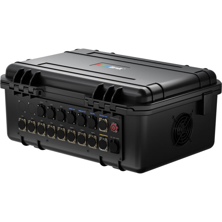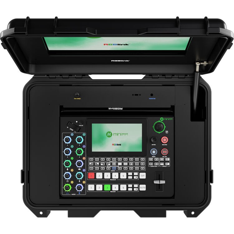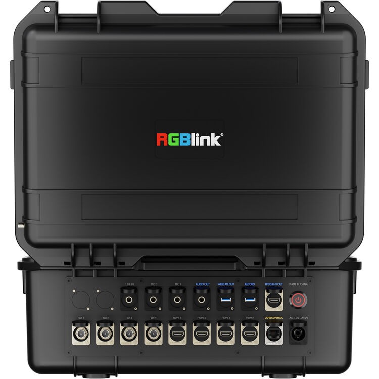 Der RGBlink mini-edge-4S HDMI/SDI Portable Field Video Switcher ist eine All-in-One-Produktionslösung, die für anspruchsvolle Live- und Feldanwendungen entwickelt wurde. Das System ist in einem hochfesten Flightcase mit hydraulischer Stangenhalterung untergebracht und bietet außergewöhnliche Haltbarkeit, Tragbarkeit und Stabilität, sodass es für den Einsatz im Freien und den 24/7-Betrieb geeignet ist. Ein leistungsstarkes Luftkühlungssystem sorgt für zuverlässige Leistung auch in anspruchsvollen Umgebungen.