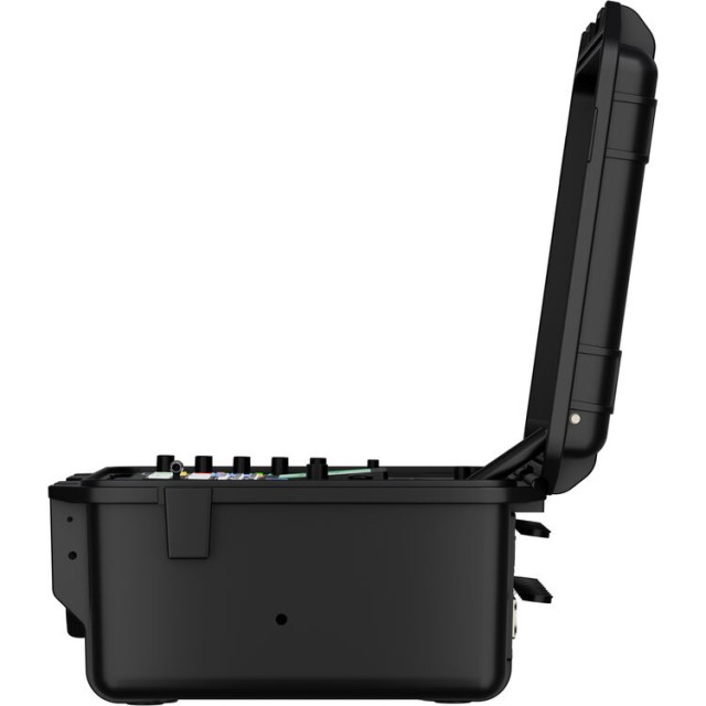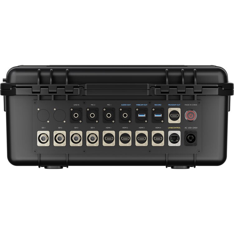 Der Switcher ist mit vier HDMI 2.0-Eingängen und vier 3G-SDI-Eingängen ausgestattet und unterstützt eine Vielzahl von Auflösungen bis zu 4K-Eingangsformaten, während die Verarbeitung mit bis zu 1080p erfolgt. Ein großes, integriertes 14-Zoll-Full-HD-IPS-TFT-Display, das in den Deckel des Gehäuses integriert ist, ermöglicht eine klare Multiview-Überwachung, Vorschau und Steuerung, ohne dass externe Displays erforderlich sind.