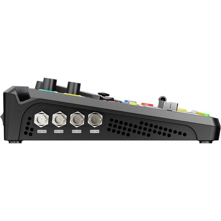 Ein 5,5-Zoll-Vollfarb-LCD-Display ermöglicht die Echtzeitüberwachung aller Ein- und Ausgänge, während die taktile Bedienoberfläche mit beleuchteten Tasten, Drehreglern, Joystick und T-Bar eine schnelle und sichere Bedienung ermöglicht. Die integrierte PTZ-Kamerasteuerung über VISCA und NDI|HX2 unterstützt bis zu vier Kameras direkt vom Switcher aus, sodass keine externen Controller erforderlich sind.