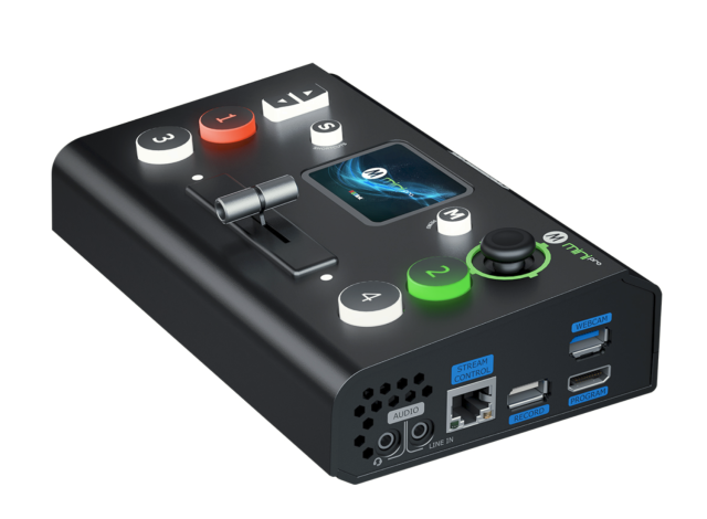 Ein integrierter 2,1-Zoll-IPS-Touchscreen in Vollfarbe bietet eine intuitive, symbolbasierte Menüführung für die Signalüberwachung, Umschaltung und Effektsteuerung. Ergänzt wird der Touchscreen durch den klassischen Fünf-Wege-Joystick und den Kippschalter, die eine reibungslose Bedienung von Übergängen, PIP, Chroma Key, Ebenenanpassungen und PTZ-Kamerasteuerung über IP VISCA ermöglichen, einschließlich des Speicherns und Abrufens von PTZ-Voreinstellungen mit einem Klick.