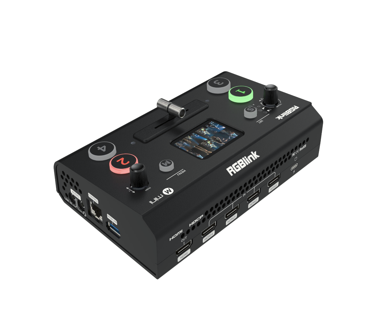 Der RGBlink mini 2022 ist ein kompakter und tragbarer Live-Videoswitcher für kleine bis mittelgroße Produktionen. Er bietet vier HDMI-Eingänge, professionelles Audio-Mixing, Multi-View-Monitoring und USB-Streaming. Mit seinem integrierten 2,1-Zoll-Vollfarbbildschirm, T-Bar-Umschaltung und Unterstützung für PIP/PBP-Layouts bietet er leistungsstarke…