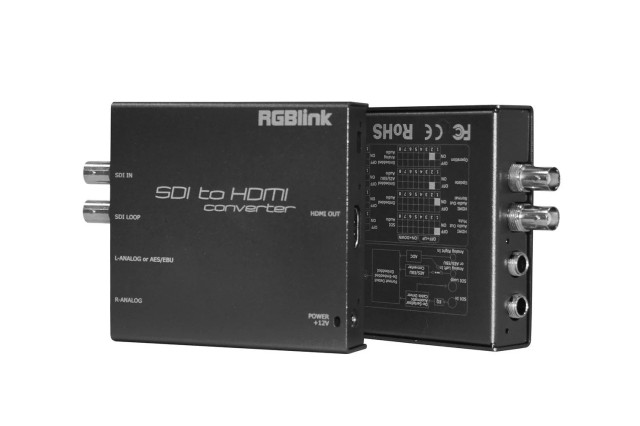 Der RGBlink MSP 203 ist ein leistungsstarker SDI-zu-HDMI-Konverter, der für professionelle AV-, Broadcast- und Videoproduktionsanwendungen entwickelt wurde. Er unterstützt SDI-Eingänge bis zu 3G-SDI und wandelt diese in HDMI-Ausgänge um, während er Stereo-Audio über zwei 1/4-Zoll-Analogeingänge oder ein digitales AES/EBU-Signal einbettet. Ein Durchschleif-SDI-Ausgang ermöglicht die Überwachung oder Verkettung mehrerer Geräte.