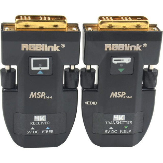 Der RGBlink MSP 314-4 ist ein vielseitiges DVI-über-Glasfaser-Extender-System, mit dem Sie hochwertige Videosignale über große Entfernungen mit minimalen Störungen übertragen können. Die kompakten Sender- und Empfängereinheiten verfügen über integrierte LC-Glasfaseranschlüsse und unterstützen Auflösungen bis zu WUXGA (1920×1200@60Hz) und HDMI 1.4 (4Kx2K@30Hz). Mit Singlemode-Glasfaser können Videos bis zu 2000 Meter weit übertragen werden, während Multimode-Glasfaser Entfernungen bis zu 300 Meter unterstützt.