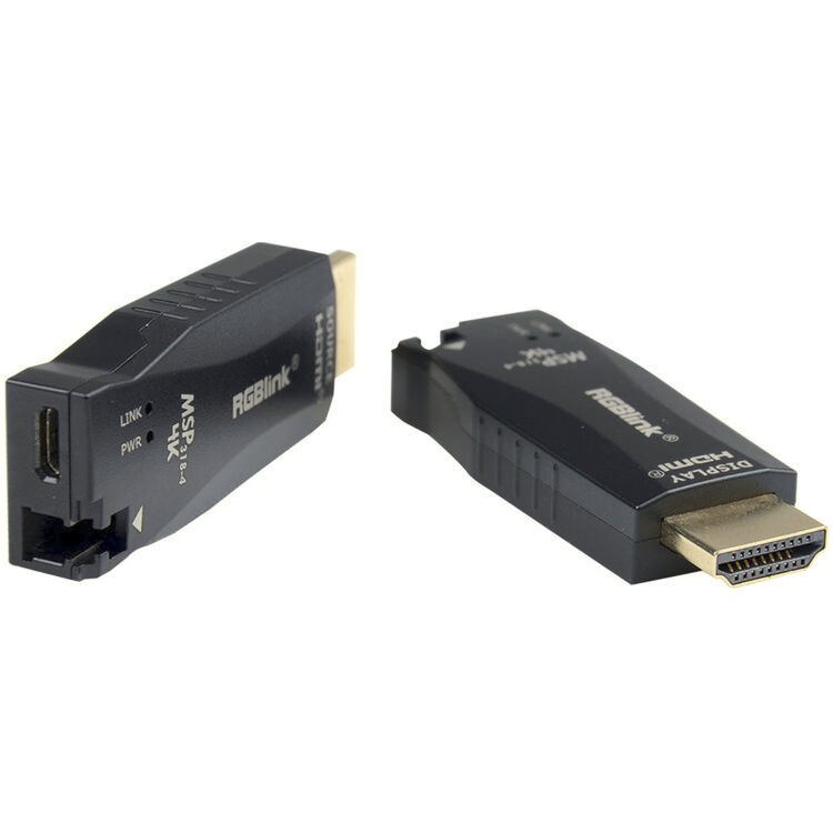 Das RGBlink MSP 318-4 Glasfaser-Extender-Set ermöglicht eine zuverlässige HDMI-Signalübertragung über große Entfernungen, die weit über die Grenzen von Standard-Kupferkabeln hinausgeht. Das System besteht aus einem Sender und einem Empfänger und wird direkt an HDMI-Quell- und Anzeigegeräte angeschlossen, wobei Glasfaserkabel für die Signalübertragung verwendet werden.