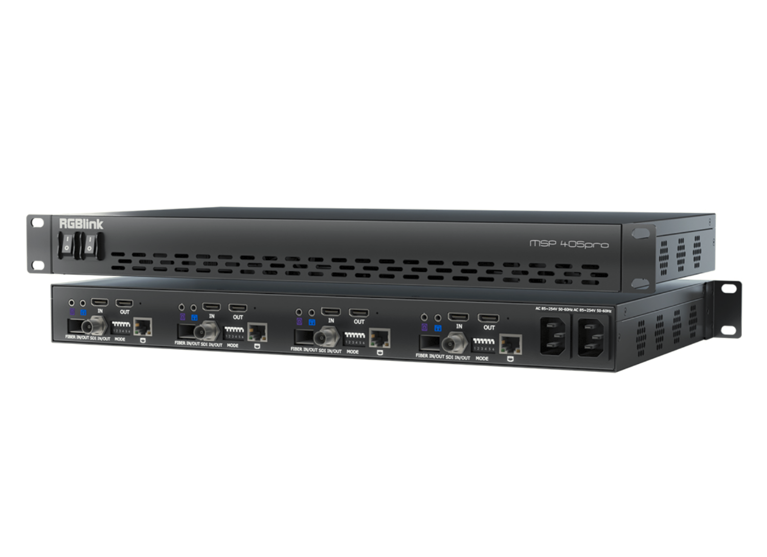 DerRGBlink MSP 405 ist ein professioneller 4K-Videosignalkonverter, der nahtlos zwischen HDMI 2.0-, SDI- und Glasfasersignalen ohne Latenz umwandelt und sich somit ideal für Rundfunk, Live-Events und Fernübertragungsanwendungen eignet.