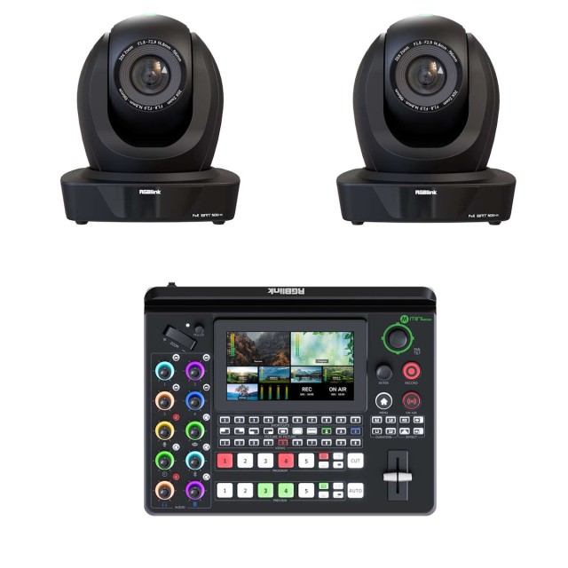 2 HDMI-Kameras und miniEdge-Switcher. 20x vue PTZ*2, Mini-Edge *1, 15m CAT6*2, 15m AOC-Kabel *2, 8 Ports PoE-Switcher *1 PTZ ABS-Koffer *1