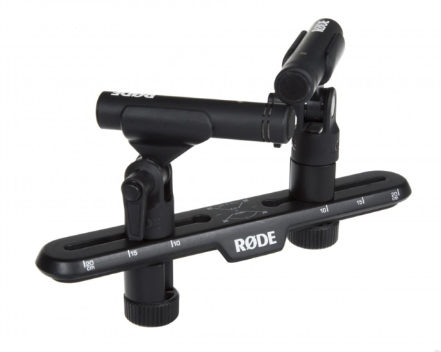 DieRØDE Stereo Bar ist eine robuste Lösung für die Montage von zwei Mikrofonen in Stereoposition. Dank der markierten Abstände (bis zu 20cm) sowie der Messzeiger für ORTF- und XY-Positionswinkel lässt sich die gewünschte Mikrofonposition für komplexe Stereoaufnahmen schnell und einfach erreichen. Es ist mit einem klassischen 5/8"-Gewinde für die nahtlose Befestigung an einem Mikrofonstativ ausgestattet. Die robuste ABS-Konstruktion hält selbst dem Gewicht von zwei schweren Großmembranmikrofonen wie dem RODE K2 stand.