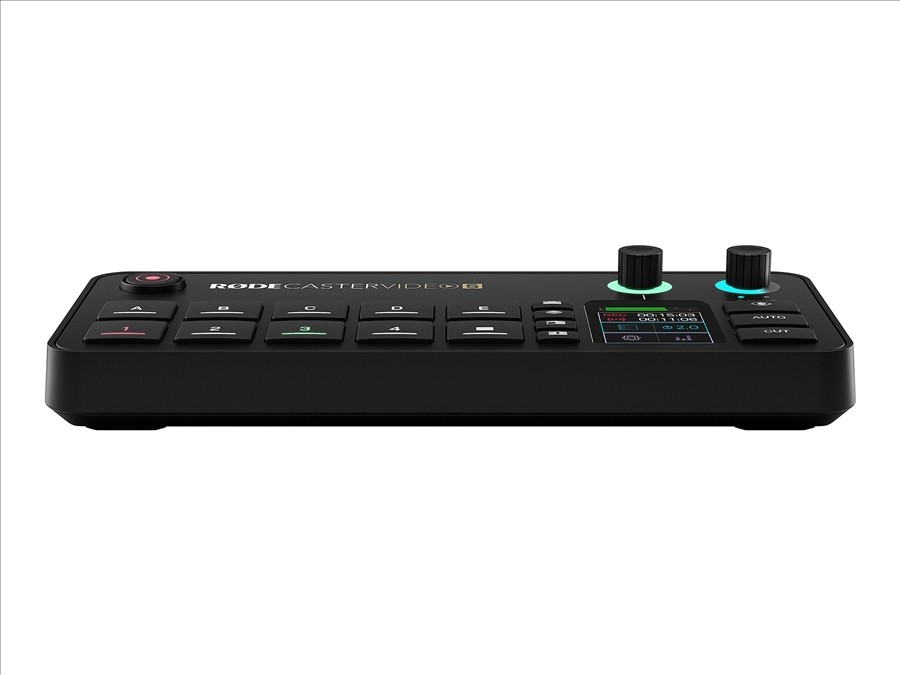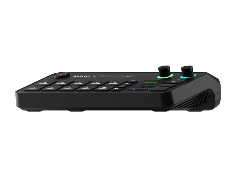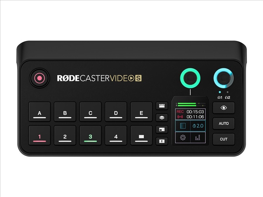 Der RØDECaster Video S ist eine vielseitige, kompakte Produktionskonsole für die komplette Steuerung von Video- und Audioproduktionen. Er ermöglicht das Umschalten zwischen bis zu vier Videoquellen, die Arbeit mit mehreren Szenen, die Integration von Grafikebenen und das gleichzeitige Mischen von Audio auf professionellem Niveau.