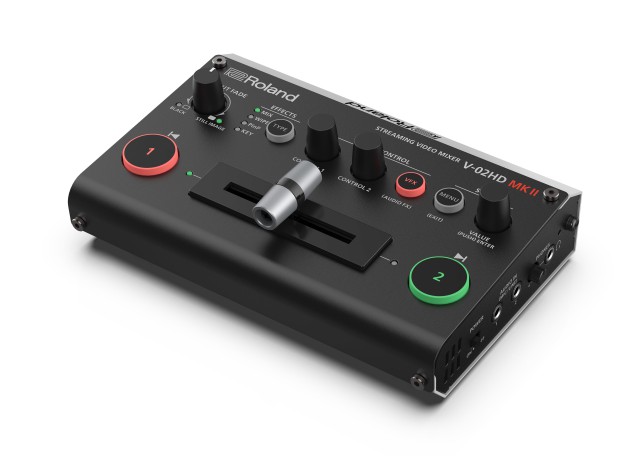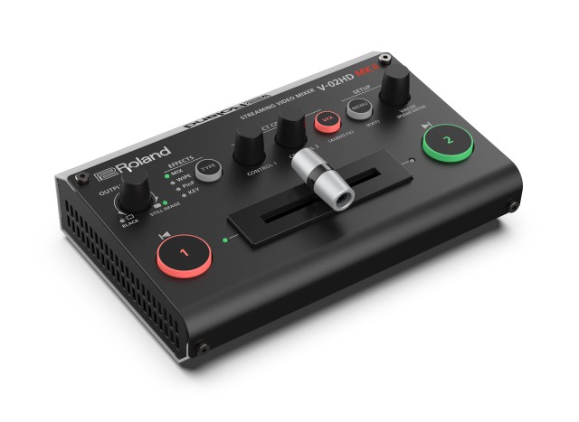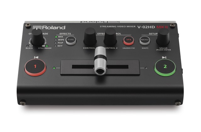 Das Roland V-02HD MK II Miniatur-Zweikanal-Overhead- und Streaming-Gerät macht es einfach, Live-Shows mit zwei Kameras mit HDMI-Ausgang einzuchecken und sie über einen Computer mit USB-C zu dampfen! Es gibt auch die Möglichkeit, Ihre Shows zu vertonen (integrierte virtuelle 10-Kanal-Konsole, 2x 3,5 mm Klinke + Steckernetzteil-Eingang, HDMI-Sound...), Effekte und Interlacing anzuwenden oder mit (optionalen) BOSS-Pedalen zu steuern.