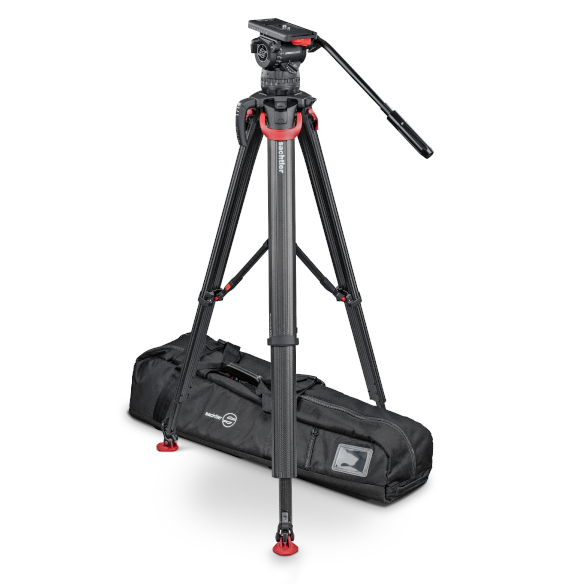 Sachtler System DV 12 Kohlefaser mit Fluidkopf, flowtech®-Stativ, Mittelspinne, Handgriff und Tasche.