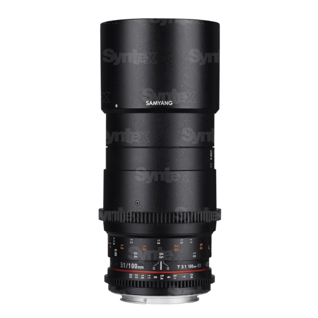 Das Samyang 100mm T3.1 ED UMC MACRO ist eines der Objektive des Samyang VDSLR Kits. Diese Objektive erzeugen die gleiche Bildfarbe und haben eine einheitliche Blenden- und Fokusringposition, um maximalen Aufnahmekomfort zu gewährleisten.