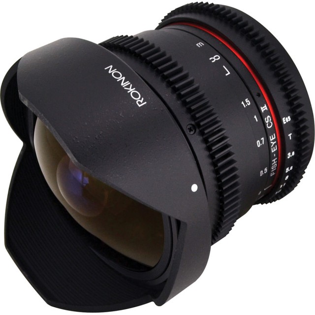 Dieses Canon EF Mount Samyang 8mm T3.8 UMC Fish-Eye CS II Objektiv ist ein Fischaugen-Cine-Objektiv, das für Videoaufnahmen mit Kameras mit APS-C-Sensoren entwickelt wurde. Es hat eine Brennweite von 8 mm und einen Ultraweitwinkel von 180°. Bei Canon-Kameras ändert sich dieser Blickwinkel jedoch auf 167°, da die Canon APS-C-Sensoren etwas kleiner sind und einen Crop-Faktor von 1,6 haben.