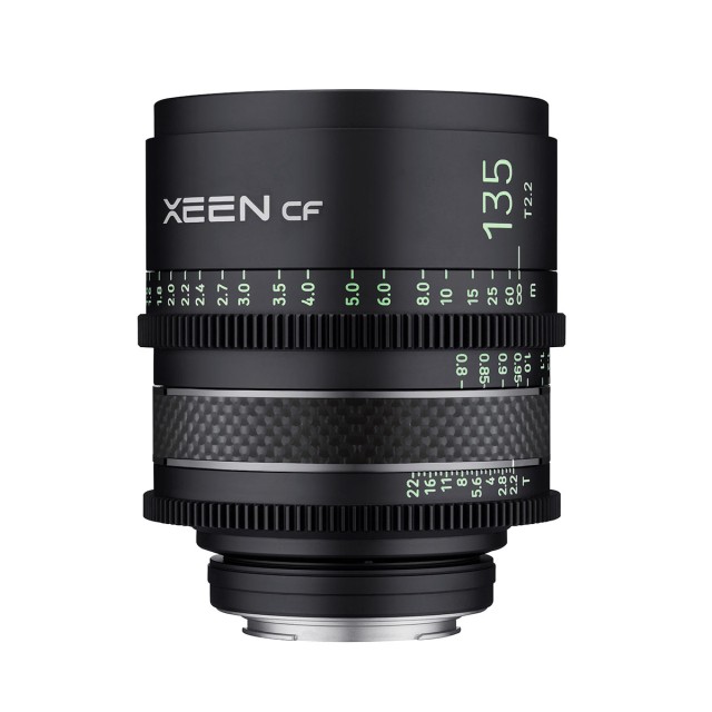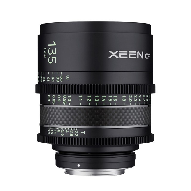 Das manuelle Filmobjektiv Samyang Xeen CF 135mm T2.2 bietet eine hohe optische Auflösung (für moderne 4K/6K/8K FF-Sensoren), eine Konstruktion mit Karbonelementen zur Gewichtsreduzierung bei hoher Festigkeit, gezackte Blenden- und Fokusringe (200°-Bereich), X-Vergütung zur Unterdrückung von Streulicht und leicht ablesbare Leuchtmarkierungen. Erhältlich in den Ausführungen EF, FE und PL.