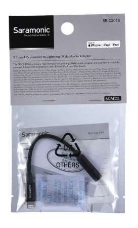 Das Saramonic SR-C2018 ist ein Apple MFi-zertifiziertes Lightning-auf-3,5-mm-TRS-Audioeingangsadapterkabel für iPhones und iPads, das den nahtlosen Anschluss von externen Mikrofonen, Funkempfängern, Mischpulten oder Recordern für professionelle Aufnahmen und Streaming ermöglicht – komplett mit Plug-in-Power für kompatible Mikrofone. Mit einer Länge von nur 14 cm und einem Gewicht von 5 g bietet diese leichte, vergoldete Anschlusslösung eine hochwertige Signalübertragung ohne Korrosion und ist ideal für On-Camera-Videos, Live-Übertragungen oder Audioaufnahmen vor Ort (Hinweis: nur Audioeingang; keine Ausgabe an externe Geräte, und die App muss externes Lightning-Audio unterstützen).