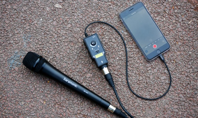 Saramonic SmartRig Di ist ein Einkanal-Audiointerface, das die Aufnahme von Audiodaten über professionelle Mikrofone (XLR) oder Instrumente (6,35 mm Klinke; Combo-Eingangsbuchse) und mobile Geräte wie iPhone, iPad und iPod touch erleichtert. Es gibt eine 48-V-Phantomspeisung für Mikrofone, einen Kopfhörerausgang (3,5 mm) und ein Gain-Potentiometer.