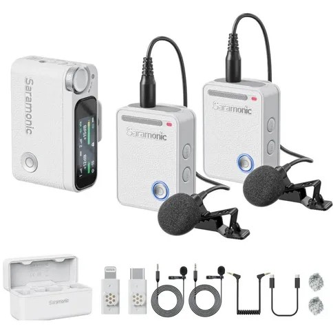 Das Saramonic Ultra White ist ein hochwertiges kabelloses Clip-On-Mikrofonsystem für zwei Personen mit Lavalier-Mikrofonen, 32-Bit-Float-Aufnahme und Timecode für präzise Audiosynchronisation. Es eignet sich ideal für Filmemacher, Content-Ersteller, Live-Streamer, Podcaster und mobile Journalisten und bietet universelle Kompatibilität mit Kameras, Smartphones, Tablets und Computern sowie IPX5-Wasserfestigkeit und eine Akkulaufzeit von bis zu 18 Stunden.