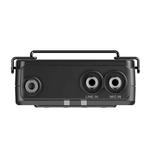 Über den externen Eingang können Sie den Empfänger mit Geräten verbinden, die über eine Mikrofon- oder Line-Buchse verfügen, z. B. mit einem Richtrohrmikrofon, einem Mischpult, einem Aufnahmegerät oder einem Musikplayer, um zusätzliche Audiosignale oder Musik aufzunehmen. Das System kann über seine USB-C-Anschlüsse mit Strom versorgt werden, sodass es viele Stunden lang mit einer 5-V-USB-Powerbank betrieben werden kann.