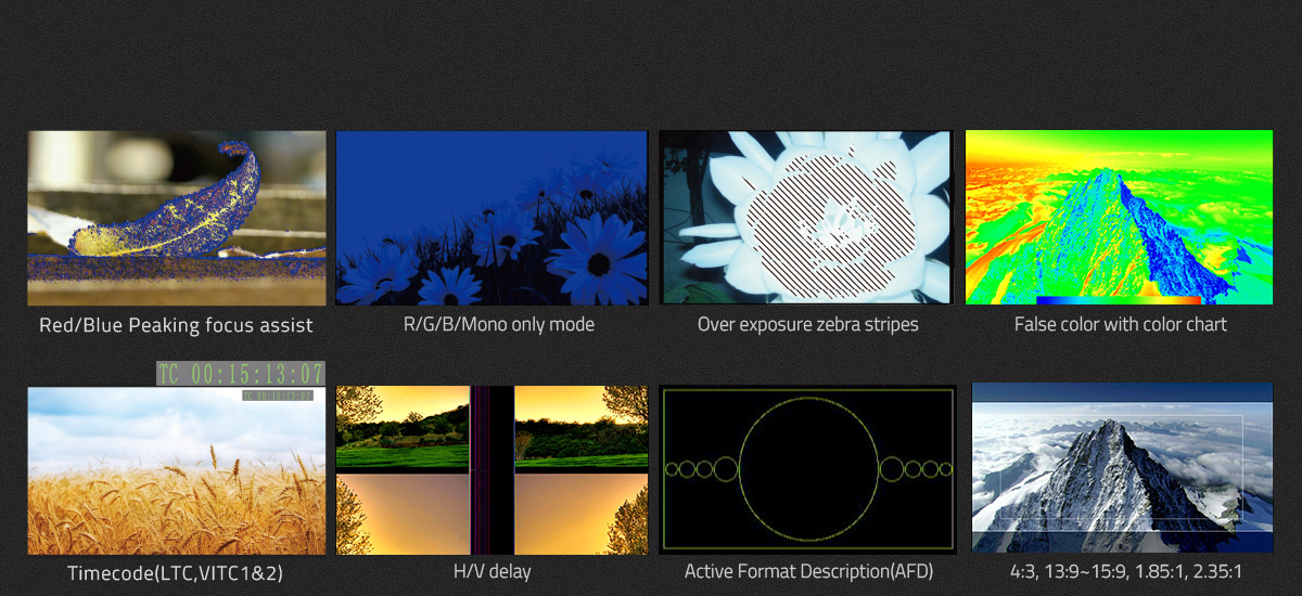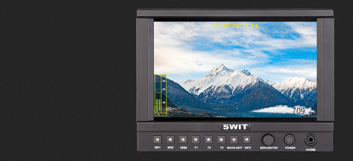 Der CM-S73H-Monitor verfügt über eingebaute Kamera-Logs in Rec 709-Konvertierungs-LUTs, einschließlich Log-C, C-log, S-log2, S-log3, V-log, J-log1, RedLogFilm. Sie können auch eigene 3DLUTs über einen USB-Stick in den Monitor importieren, der 17x17x17 3DLUT-Würfel-Dateien unterstützt.