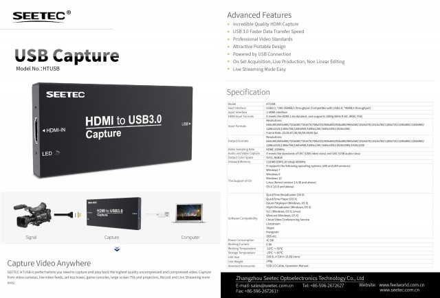 USB 3.0-Gerät zum Laden von SD/HD-Video von HDMI-Quellen (HDMI-Eingang > USB 3.0 UVC/UAC-Ausgang, kompatibel mit USB 2.0). Ideales Gerät z. B. für die Aufnahme von Videos von Spielkonsolen, für Live-Streaming (z. B. mit Flash Media Encoder, Wirecast, Livestream Procaster und Resolume Avenue 4), Videokonferenzen usw. Kompatibel mit Windows 7+, Linux (2.6.38+) und macOS 10.8+.