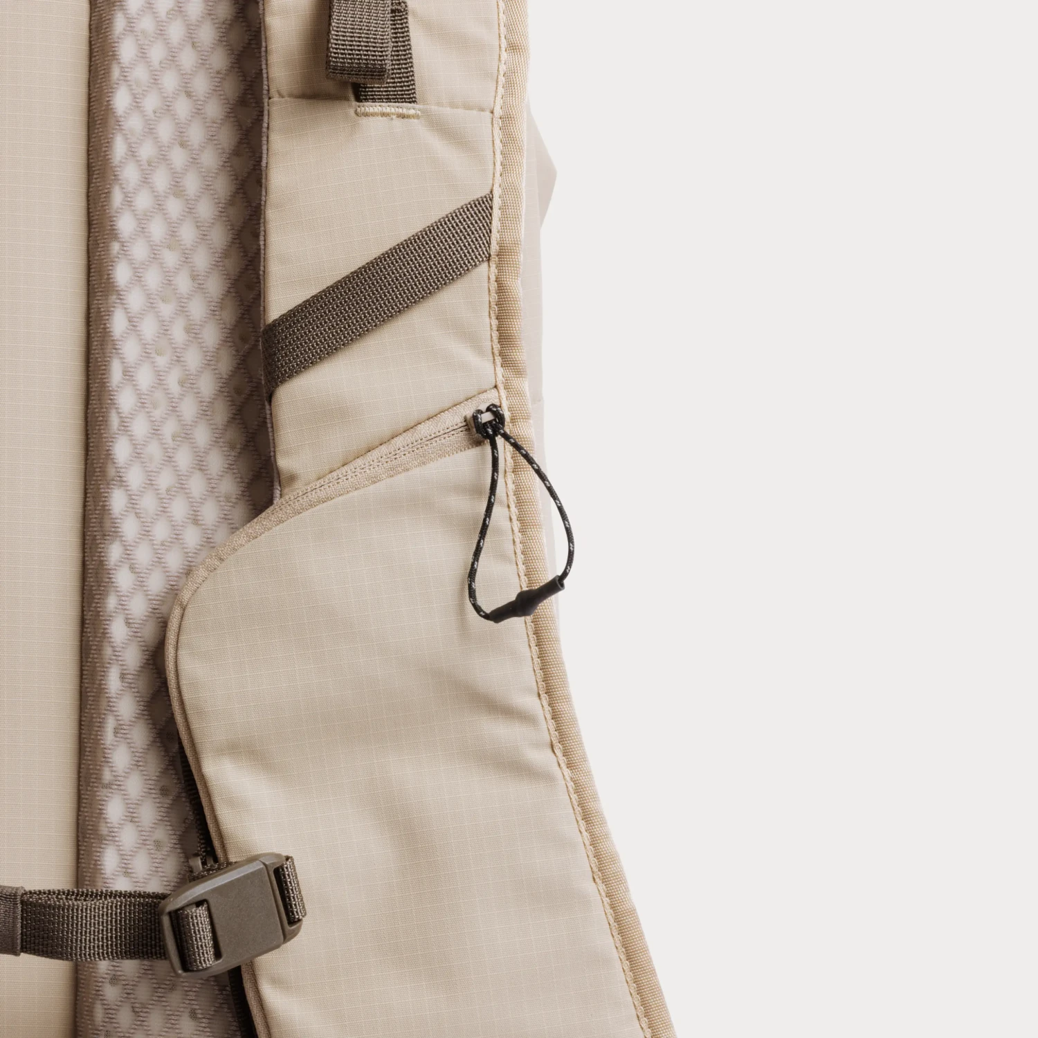 Der Rucksack verfügt über zwei abnehmbare gepolsterte Einsätze an der Vorderseite und am Boden für zusätzliche Stabilität und Schutz, wenn nötig. Wenn der Schutz nicht benötigt wird, können Sie sie für ein leichteres Aussehen entfernen oder als Sitzfläche verwenden.