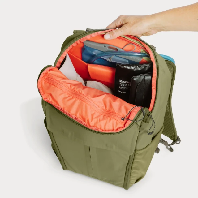 Einfaches Ein-Kammer-Design mit Zugang von oben, um schnell Dinge aus der oberen Schicht herauszunehmen, oder mit vollständigem Zugang von vorne für Fotoausrüstung. Kein Herumkramen im Rucksack mehr.