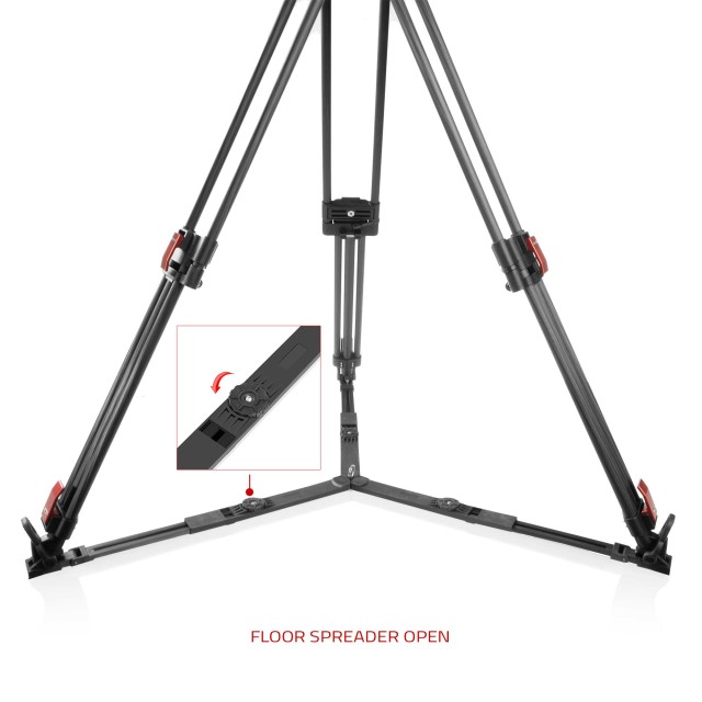 Die zweistufigen Kohlefaserbeine mit einer 100-mm-Schale sind für 100-mm-Stativ-Fluidköpfe (HD15) ausgelegt und verfügen über sehr solide Aluminiumklemmen, um Ihr Stativ in der richtigen Höhe zu sichern. Die Beine sind stark, stabil und korrosionsbeständig, dabei aber leicht und einfach zu bedienen. Das System hat einen großzügigen Höhenbereich von 16 1/8 bis 58 1/2" (41 bis 148,5 cm) für Aufnahmen aus niedrigen und hohen Winkeln bei Verwendung der mitgelieferten Bodenspinne. Die Unterseite der Beine ist mit Aluminiumspikes versehen, die bei abgenommenem Spreizer das Schießen auf vereisten oder rutschigen Oberflächen ermöglichen. Auf unebenem Gelände können die Beine unabhängig voneinander eingestellt werden. (felsiger Berg). Die Beine verfügen über eine 100-mm-Schalenbasis für eine schnelle Nivellierung des Kopfes. Eine gepolsterte Transporttasche für den sicheren Transport ist im Lieferumfang enthalten.
