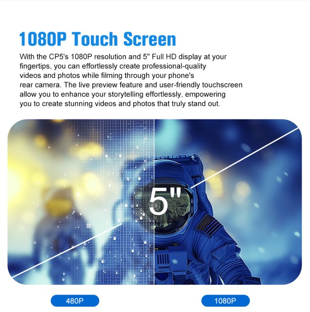 Mit integrierter kabelloser Auslösersteuerung und USB-C-Kompatibilität rationalisiert die CP5 Ihren Kamera-Workflow. Sein kompaktes Design umfasst einen 3,5-mm-Anschluss für das Audio-Monitoring, einen microSD-Kartensteckplatz zum Speichern von Filmmaterial und Bluetooth-Fernbedienungsunterstützung für verbesserte Benutzerfreundlichkeit. Dieser Monitor ist ideal für professionelle Videofilmer, Vlogger und Filmemacher, die eine hochwertige tragbare Überwachungslösung benötigen.