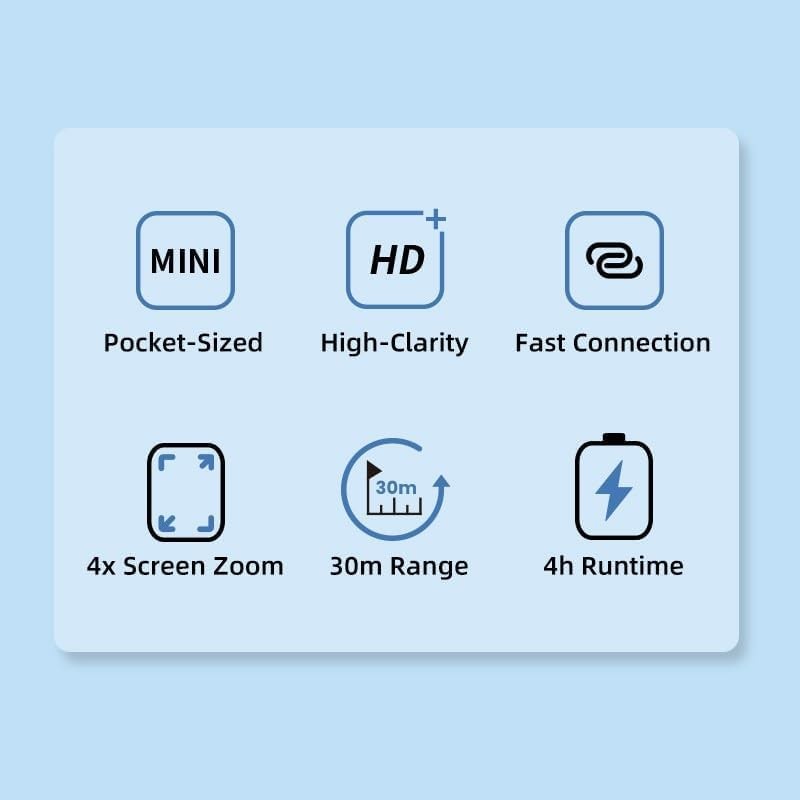 Die Bluetooth-Auslösersteuerung ermöglicht die Fernbedienung des iPhones aus einer Entfernung von bis zu 30 Metern, und der 1200-mAh-Akku sorgt für 4 Stunden Dauerbetrieb. Dank der magnetischen Befestigung lässt es sich leicht an Stativen, Halterungen oder anderen kreativen Aufbauten anbringen. Eine geringe Latenz von 60 ms sorgt für eine flüssige Videoüberwachung.