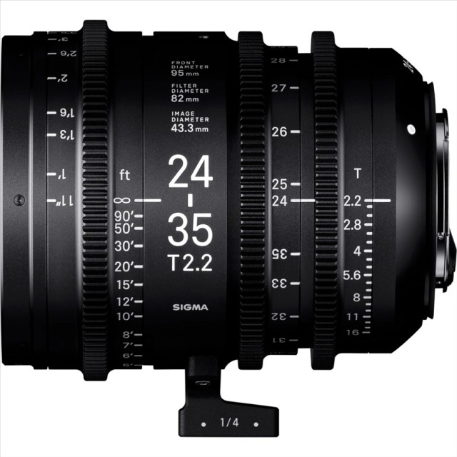 Das SIGMA CINE FF-Zoomobjektiv mit Canon EF-Bajonett wurde für die Anforderungen der anspruchsvollsten Profis entwickelt. Das elegante und kompakte Vollmetallgehäuse ist staub- und spritzwassergeschützt und ermöglicht den Einsatz selbst unter härtesten Bedingungen. Lasergravierte Beschriftungen mit Leuchtlack sorgen für bessere Lesbarkeit bei schlechten Lichtverhältnissen. In der Basisversion ist der Lack auf die Brennweitenangabe aufgetragen, in der Fully Luminous-Version auf die gesamte Gravur. Der Durchmesser der Frontlinse beträgt 82 mm. Der Außendurchmesser des vorderen Tubus von 95 mm ist bei allen Modellen identisch und ermöglicht die Befestigung von Zubehör sowie externen Blenden oder Filtern. Die standardisierte Farbbalance über alle Brennweiten hinweg und die hohe Auflösung von 6K–8K bieten ein perfektes Bild und feine Details. Die Antireflexbeschichtung minimiert Reflexionen und Geisterbilder, wodurch sich die Objektive auch hervorragend für Color Keying und die Arbeit mit Spezialeffekten eignen. Ein absolut gleichmäßiger und leiser Lauf gewährleistet eine feinfühlige und präzise Bedienung des Fokus- und Zoomrings im Bereich von 180° bzw. 160°. Der Zahnabstand entspricht dem Standard für Filmobjektive von 0,8 M. Die manuelle Blendensteuerung im Bereich von 60° lässt sich dank des einheitlichen Winkelabstands zwischen den T-Stufen intuitiv bedienen. Die Anzahl der Blendenlamellen beträgt 9. Zu jedem Objektiv wird standardmäßig ein Stativanschluss mitgeliefert. Die angebotenen Bajonette für dieses Objektiv sind Canon EF und Sony E. Eine Bajonettkonvertierung zwischen den angebotenen Modellen ist möglich.